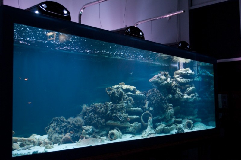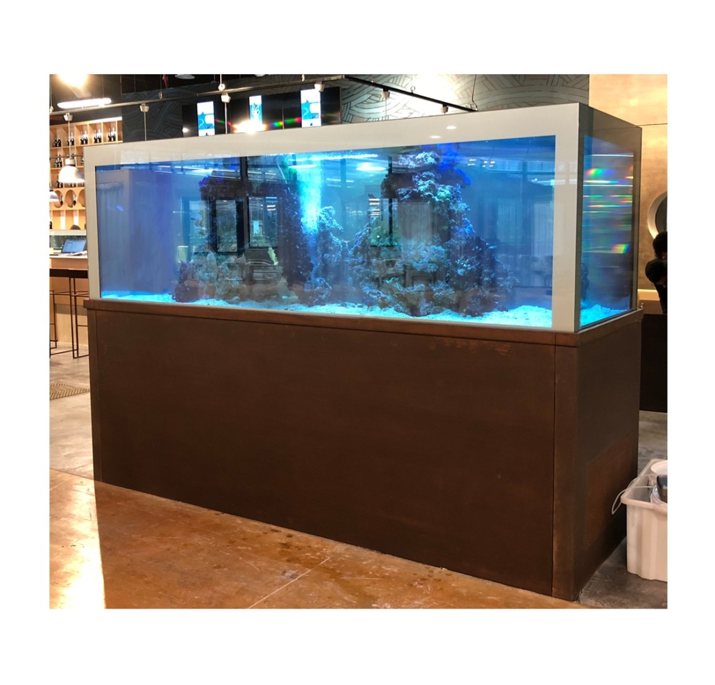Acquario Vivaio Mod.ATLANTIS FS MEDITERRANEO Acquario ornamentale per ristorante o pescheria, è progettato e realizzato per mantenere nelle migliori condizioni Aragoste, Astici e/o pesci vivi , avente le seguenti caratteristiche : vasca in cristallo a vetro camera con verniciatura interna dei vetri ed antisfondamento completa di coperchi, conforme alla nuova normativa sulla sicurezza 81/2008, filtro incorporato a sabbia calcarea, telaio in acciaio inox, contiene le apparecchiature tecniche di funzionamento pompa di circolazione a basso consumo energetico, protein skimmer per eliminazione della sostanza organica, Impianto di degerminazione con ozonizzatore automatico, Impianto di sterilizzazione con lampade UVc con tubi al teflon, impianto di refrigerazione con evaporatore al titanio e termostato elettronico a consumo ridotto, impianto di filtrazione chimica, impianto idraulico realizzato con materiali atossici per uso alimentare , Impianto elettrico a norma IP 55, con centralino e spina 16A con alimentazione elettrica tipo monofase 230 V, dotazione tecnica con: libretto istruzioni uso impianto, termometro, densimetro e retino.
