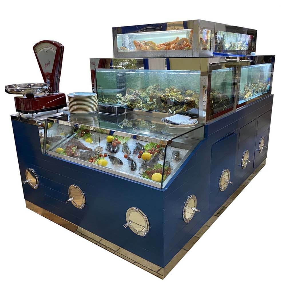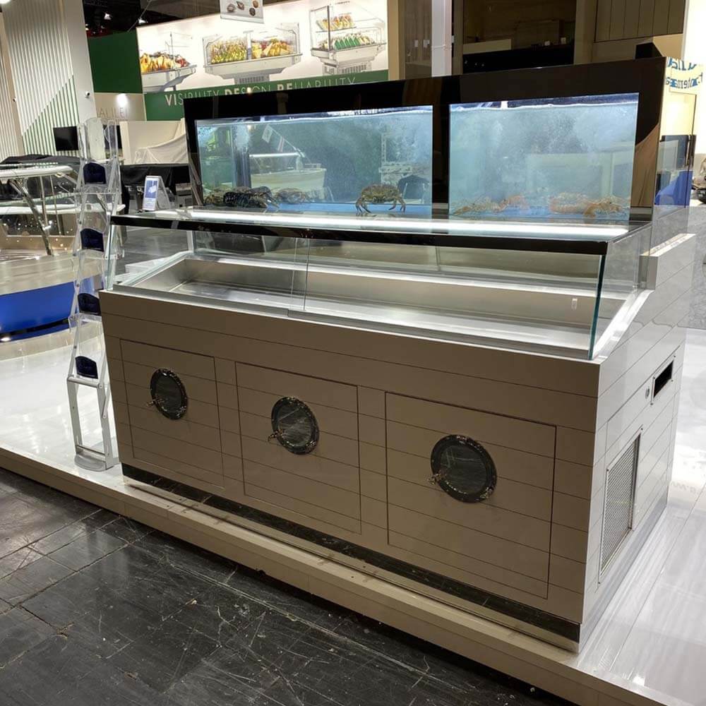 Dalla stessa famiglia del Revolution nasce il Combi, un acquario con espositore integrato che ha rivoluzionato il modo di presentare al cliente i migliori crostacei e pesce fresco. Unendo le caratteristiche di un acquario Mercury alla bellezza ed eleganza di un espositore refrigerato realizzato in acciaio inox 316L. Infinite possibilità di combinazione rende Revolution Combi l esempio perfetto della customizzazione Made in Italy, in base alle richieste del cliente, sia nelle misure che nei materiali, scegliendo se avere l acquario superiore con vasca singola o con due temperature distinte, mantenendo sempre la compattezza e praticità che lo contraddistinguono,con tecnologie avanzate che garantiscono altissime performance e una riduzione di costi energetici.