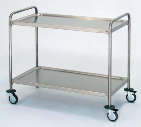 I carrelli per sala hanno i piani con invaso stampato ed insonorizzato, la struttura è in tubo inox di 25 e le ruote in gomma sono dotate di anello paracolpi. Disponibile la versione a due, tre o quattro piani. I pianali sono in lamiera inox rinforzata con manico in tubo inox di 25, ruote in gomma e sono dotati di angoli sporgenti per il contenimento del materiale trasportato, così come le pianette porta cassette.