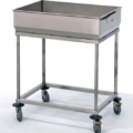 Il carrello porta carne é realizzato in tubolare inox AISI 304 con ruote in gomma di 125 con supporto inox. Dispone di 5 barre porta ganci e di vaschetta inferiore di raccolta estraibile con piletta di scarico. La serie CS è costituita da una base in tubolare dove alloggia una vasca estraibile, a tenuta liquidi e con due maniglioni laterali di presa.