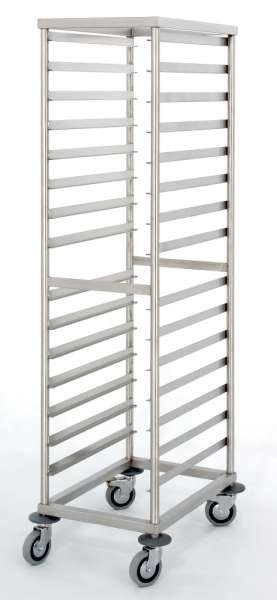 I carrelli porta teglie sono realizzati in acciaio inox AISI 304 satinato scotch-brite.Una serie assortita a completa di carrelli per il trasporto di teglie e vassoi di ogni dimensione ed adatti ad ogni esigenza: gastronomia, carne, panifi cazione, pasticceria. Sono tutti realizzati in acciaio inox AISI 304 satinato scotch-brite con ruote in gomma. Il carrello e le rastrelliere con bracci porta teglie pasticceria sono forniti smontati, gli altri sono interamente saldati. Possiamo fornire anche teglie inox gastronorm e vassoi inox per carne di mm. 410×610.