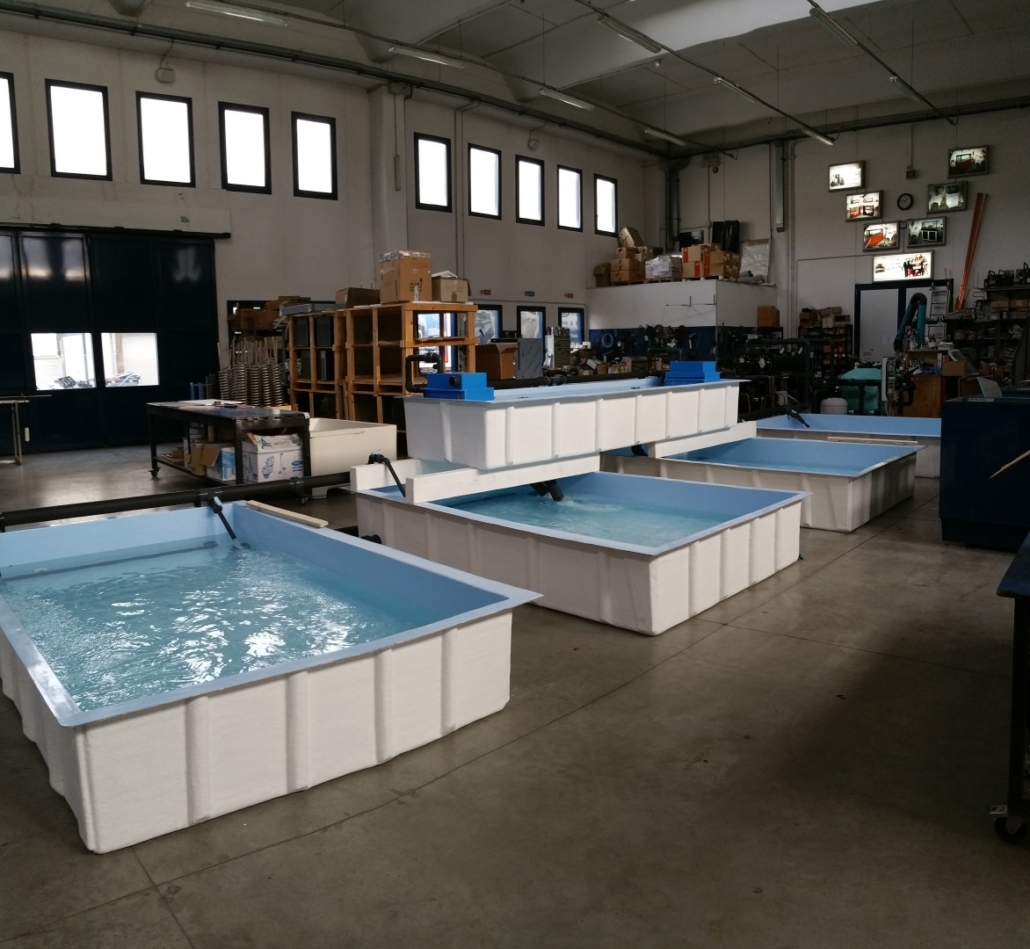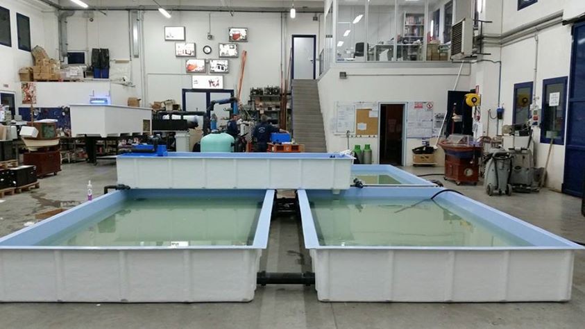 Tecnologia sempre all’ avanguardia, essenziale per chi guarda al futuro, l’ Impianto è progettato e realizzato per stoccare per lunghi periodi e mantenendo le migliori condizioni Astici, Aragoste e/o pesci vivi , ma ciò che lo rende unico è. La serie GROUND SYSTEM è funzionale, comodo, facile da pulire e da gestire ed estremamente versatile, infatti costituita da una o più serie di vasche a scalare in vetroresina ad uso alimentare di robusta costruzione, per maggiore sicurezza dell’ operatore le vasche sono dotate di bordo anti scivolo. Il sistema di filtrazione è diviso in 3 processi : biologico con filtro incorporato a sabbia calcarea posto sulla vasca superiore, con griglie a “sandwich” per il sostegno dei materiali filtranti; meccanico a pressione con sabbia quarzifera di diverse granulometrie, Chimico per eliminazione delle sostanze coloranti presenti nell’ acqua, Pompa di circolazione centrifuga in materiale plastico affidabile e robusta, Impianto di refrigerazione con Gruppo compressore completo di Evaporatore al Titanio, esente da corrosione e Termostato elettronico a microprocessore con sonda nel circuito idraulico, impianto idraulico realizzato con materiali atossici per uso alimentare, Schiumatoio automatico per l’ eliminazione della sostanza organica , impianto idraulico realizzato con materiali atossici per uso alimentare, Impianto elettrico a norma IP 55 con comandi a bassa tensione 24V, Libretto istruzioni uso impianto, termometro, densimetro e retino.