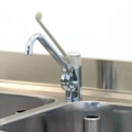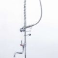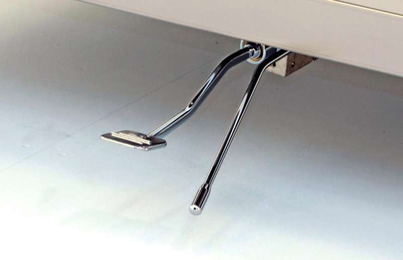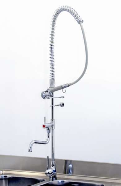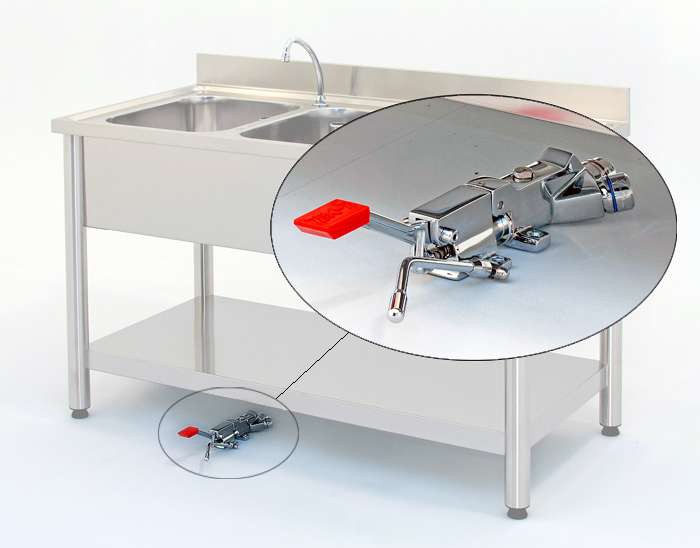 Miscelatore a padale monocomando – Miscelatore esterno, in ottone cromato, con fissaggio al sottopiano dei lavelli od all’apposito supporto “Lindo” – Premendo la leva di comando si ottiene acqua fredda e progressivamente miscelata e bollente. Lasciando la leva l’erogazione continua. La leva cromata la interrompe – Portata a 3 bar: 16 litri/minuto